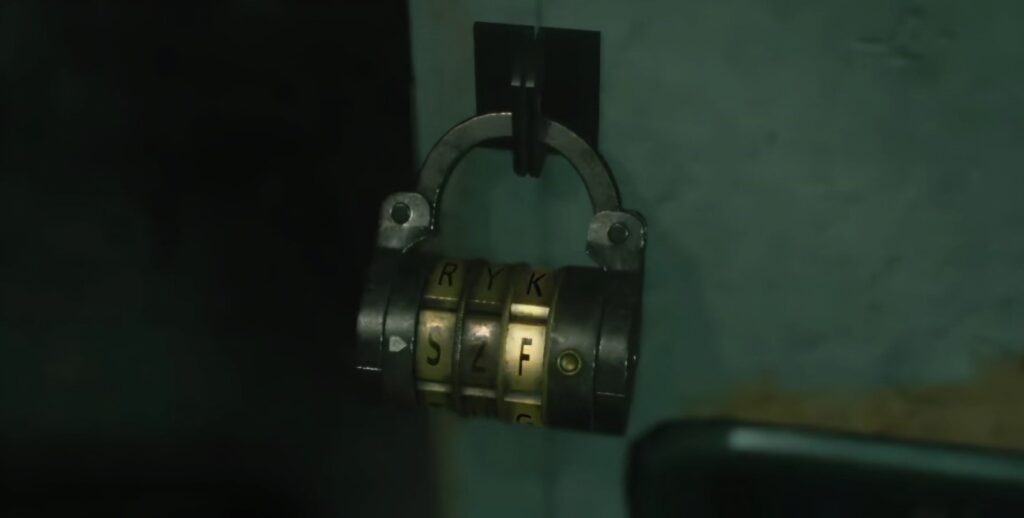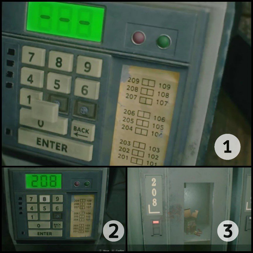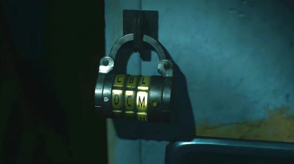 Code location. You will need undeveloped film, which can be found at the shooting range. Find the room in the parking lot, which is located under the statue of the goddess. It can be opened with a pink key. After developing the film, you will see a photo of a lock with the combination DCM.