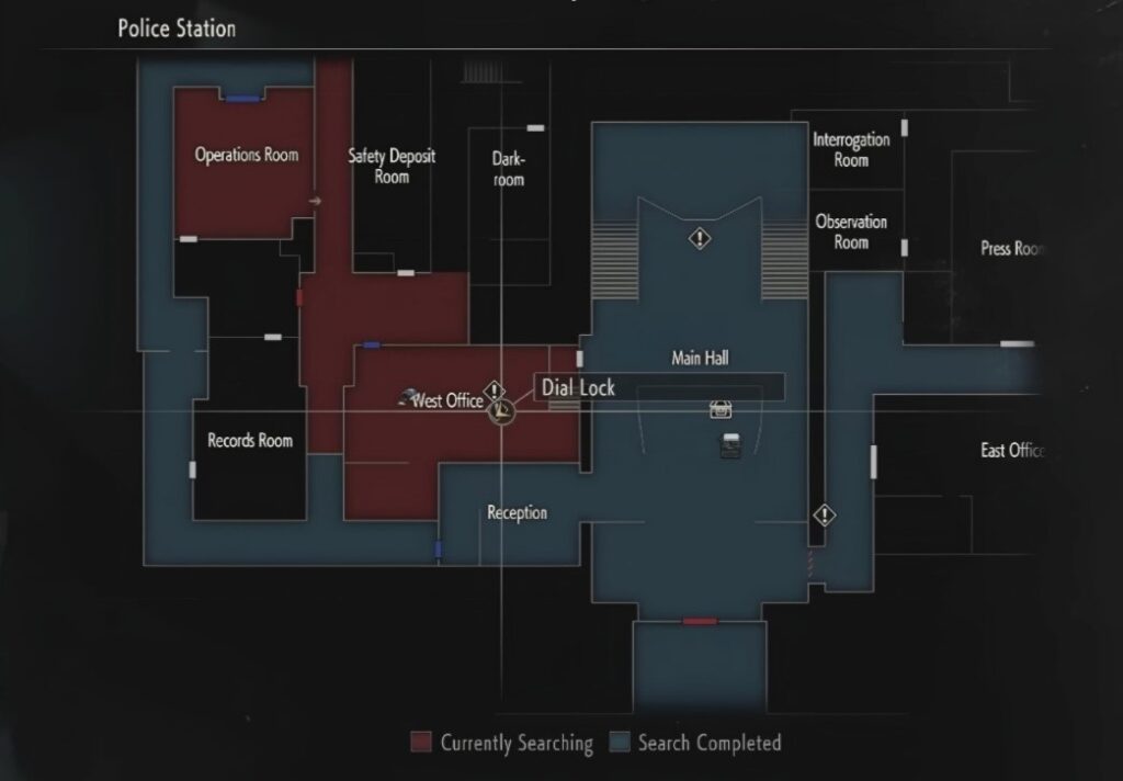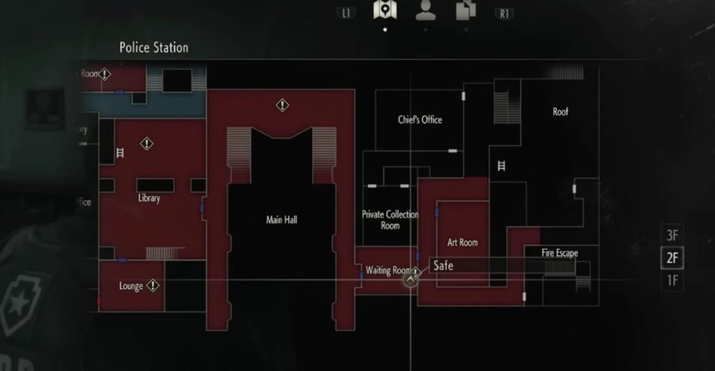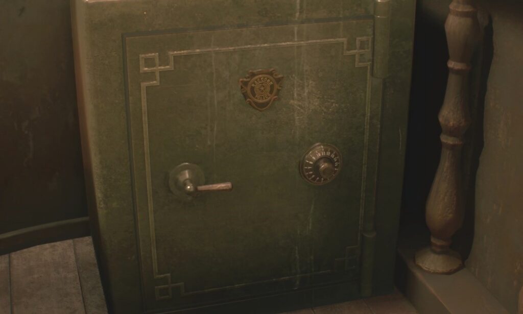Safe location. You are still in the police station. The safe is in the corner office on the west side, near Leon’s desk.