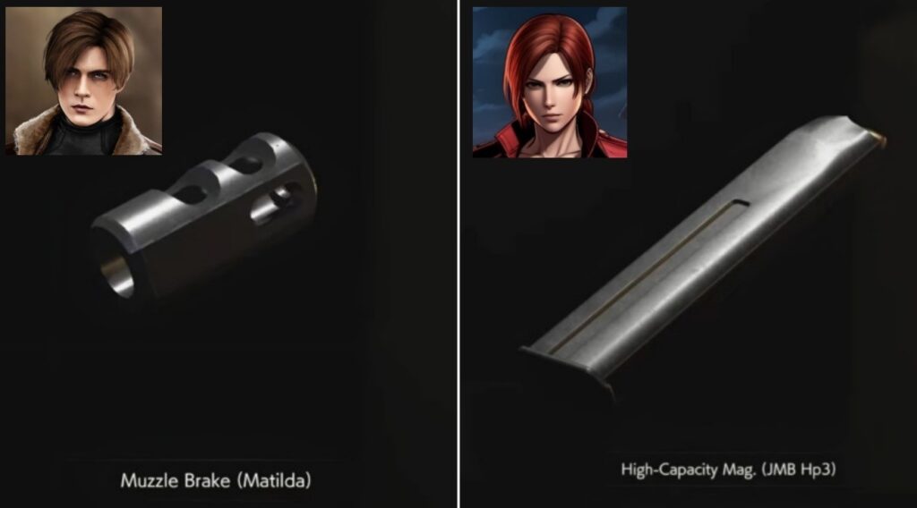Rewards. For Leon – Muzzle Brake ( Matilda), for Claire – High-Capacity Mag ( JMB Hp3).