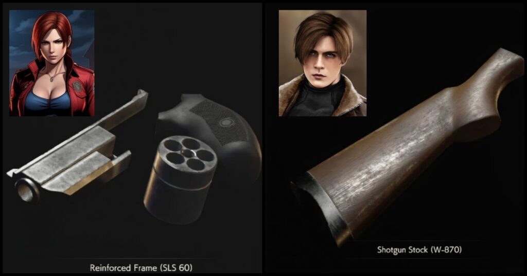 Rewards. For Leon – Shotgun Stock (W-870), for Claire – Reinforced Frame for SLS 60.